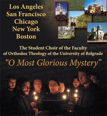 The choir consists of 16 students, who sing services and concerts in English as well as in Greek and Slavonic. They are currently touring the U.S. and will perform in Los Angeles, San Francisco, Chicago, New York, and Boston. During their visit, Nenad Milosevic, Professor of Liturgics at the Belgrade seminary, will accompany them. St. Mark Antiochian Orthodox and the Most Holy Theotokos Serbian Orthodox churches of California organized the tour. To learn more about the concert program and the choir’s other venues, visit http://www.westsrbdio.org/Announcements/Diocesan%20Days/choir_visit.html